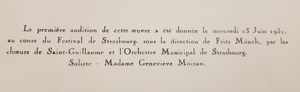 Ce concert sera presque un anniversaire, puisque l’œuvre a été créée à Strasbourg le 13 Juin 1951!